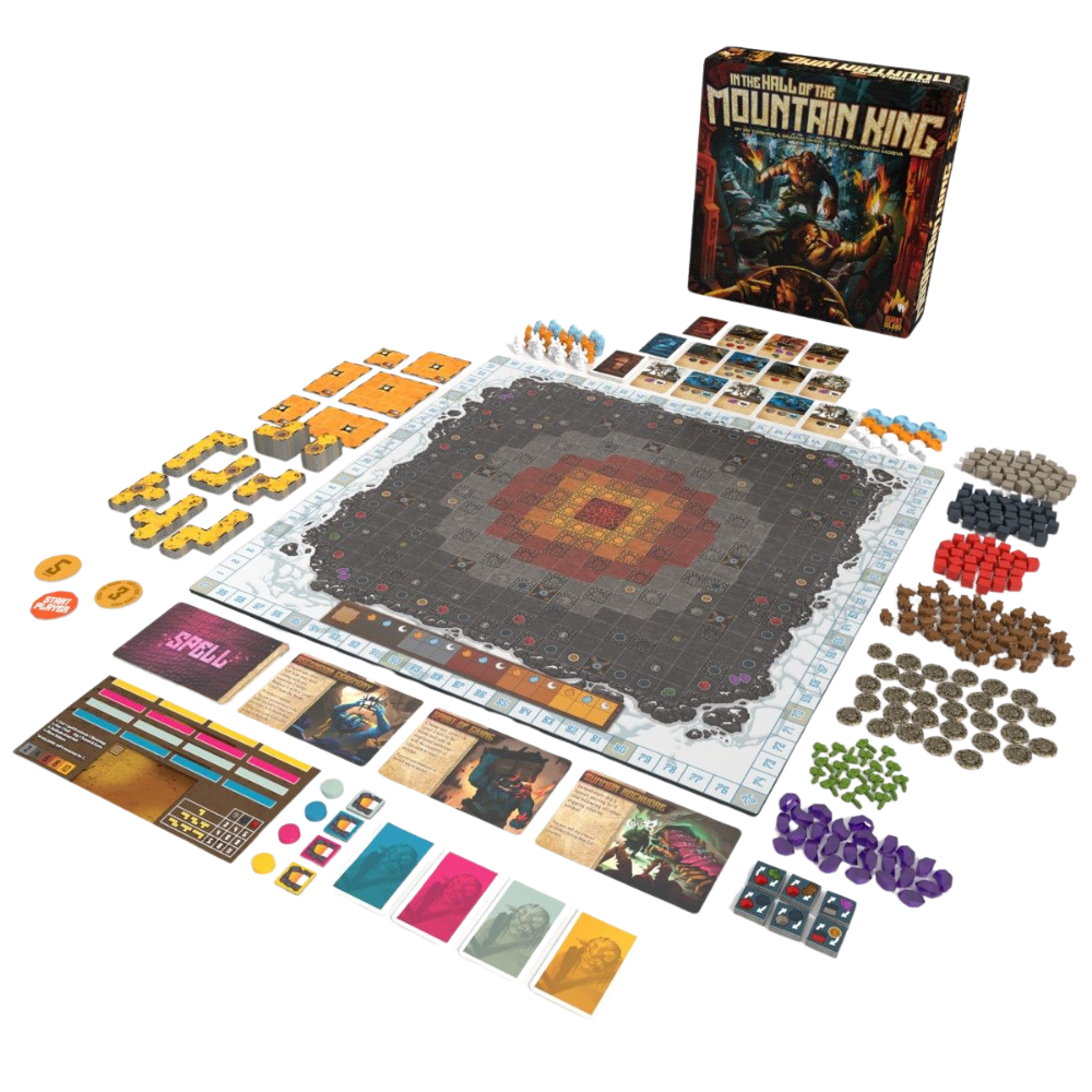 Play as trolls rebuilding your abandoned kingdom under the mountain in In the Hall of the Mountain King. With muscle and magic, you'll unearth riches, dig out collapsed tunnels, and carve out great halls as you raise the toppled statues of your ancestors to their places of honor at the heart of the mountain. Gameplay is driven by the innovative cascading production system. Timing and tactics are key as you work to restore your home to its former glory and win the crown!