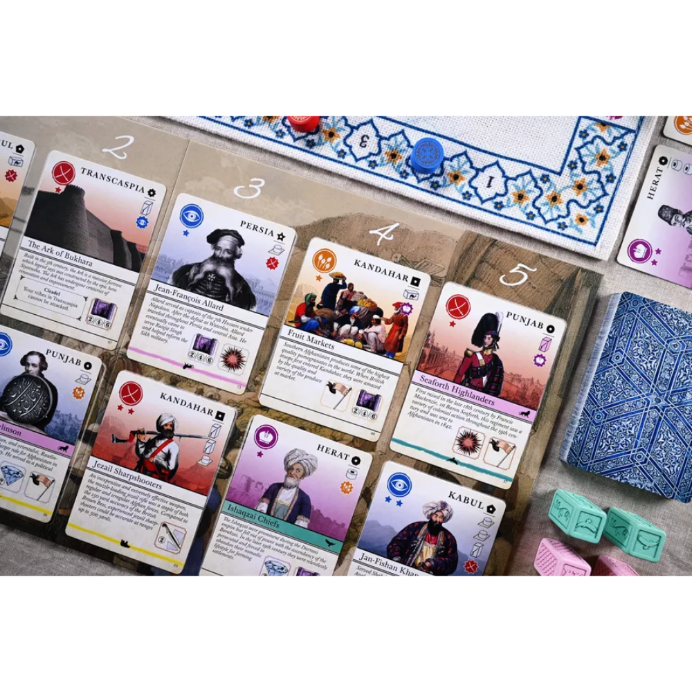 In Pax Pamir, players assume the role of nineteenth century Afghan leaders attempting to forge a new state after the collapse of the Durrani Empire. Western histories often call this period "The Great Game" because of the role played by the Europeans who attempted to use central Asia as a theater for their own rivalries. In this game, those empires are viewed strictly from the perspective of the Afghans who sought to manipulate the interloping ferengi (foreigners) for their own purposes.