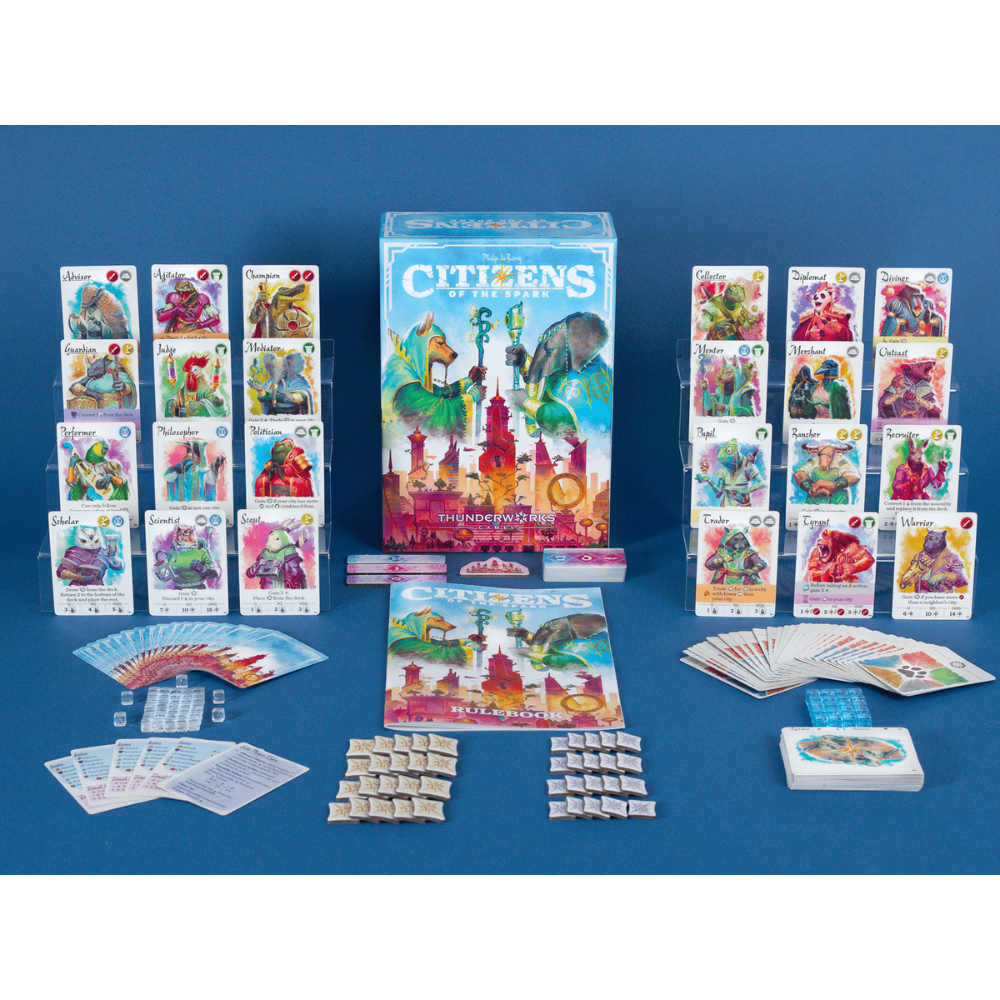 Variable set-up card game in which players take turns attracting citizens, taking actions, and claiming sparks. The more citizen cards... Read more