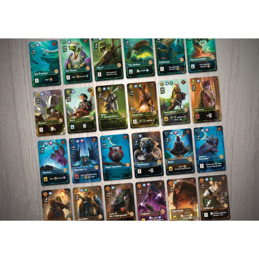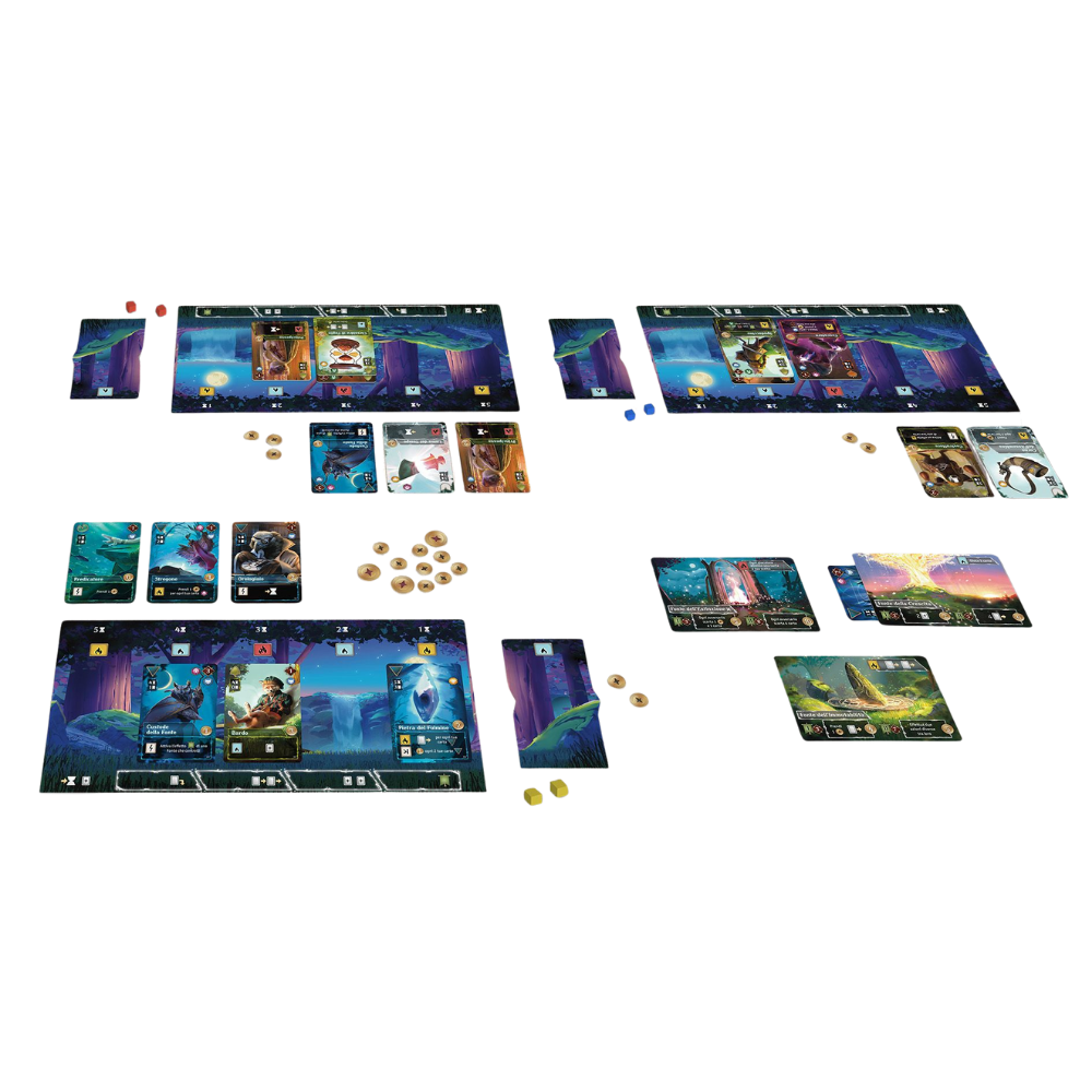 Echoes of Time is a strategic game for 2-4 players in which you attempt to create the best-equipped fellowship of characters from different factions to conquer the sources of power. Try to control and modify the flow of time to outshine your opponents. The game includes more than one hundred cards with unique effects that you will use to build a new deck each game, and a "sliding tile" system guides you in managing the time needed for your cards to become usable, while simultaneously controlling the activation rhythm of their effects.