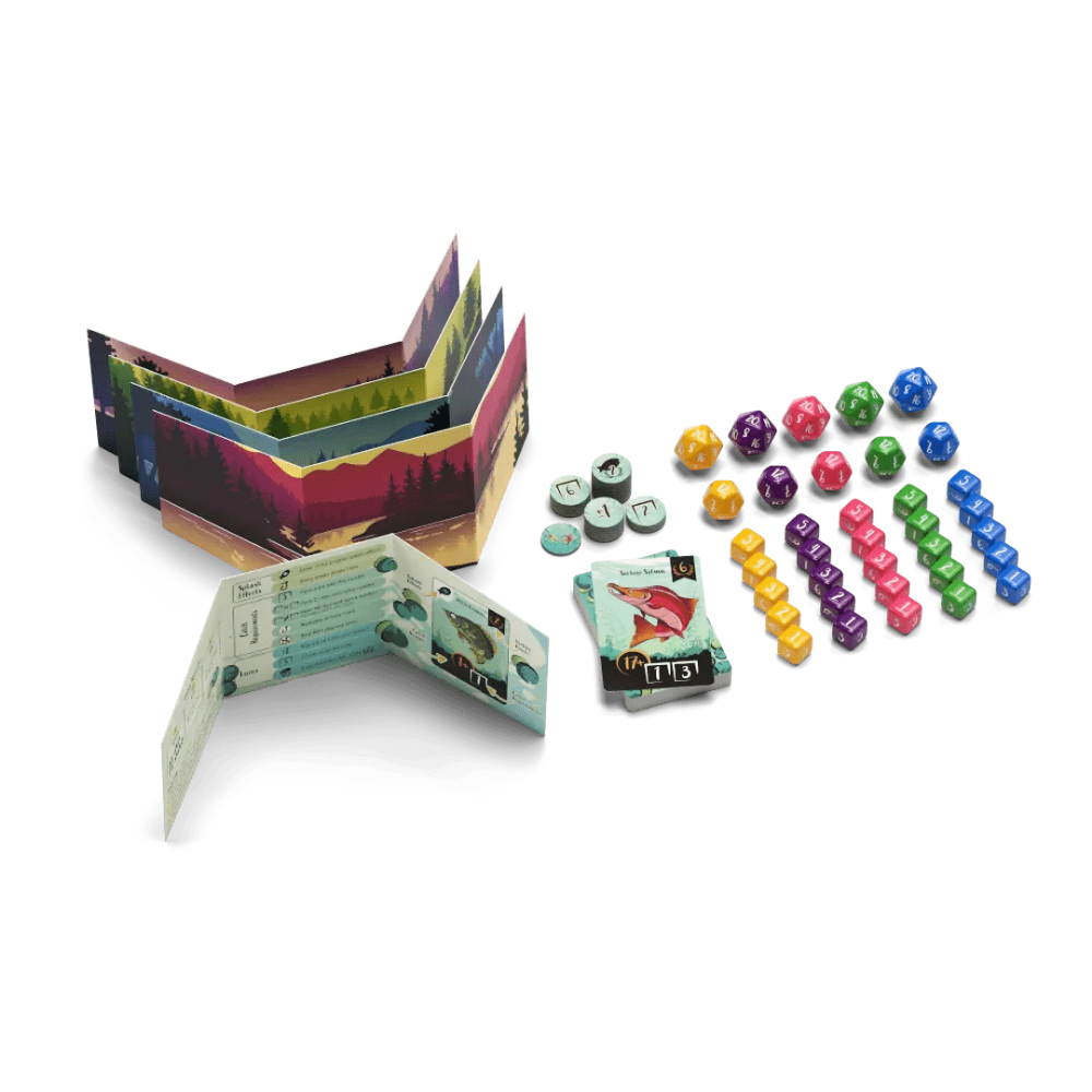 Players bid dice and roll them to try and catch fish. Bid less to go first! Players compete to collect... Read more