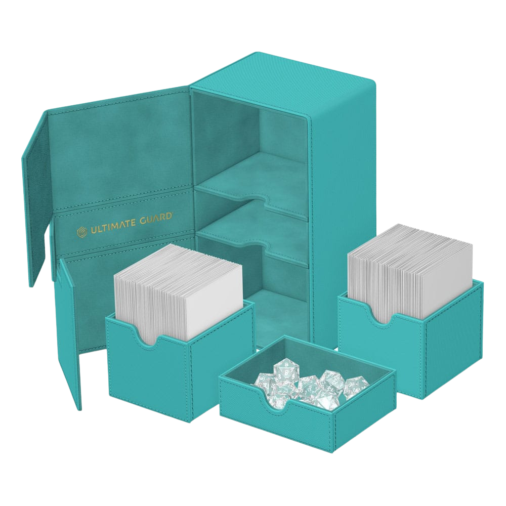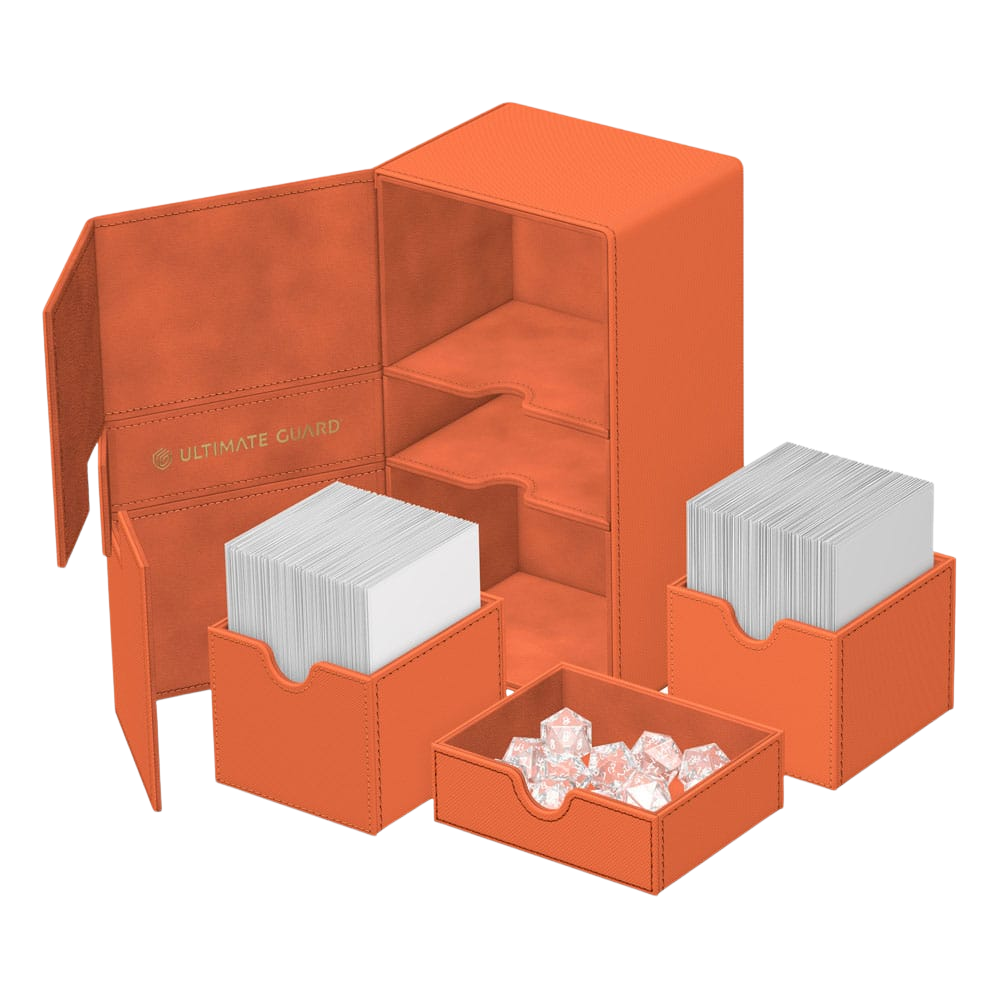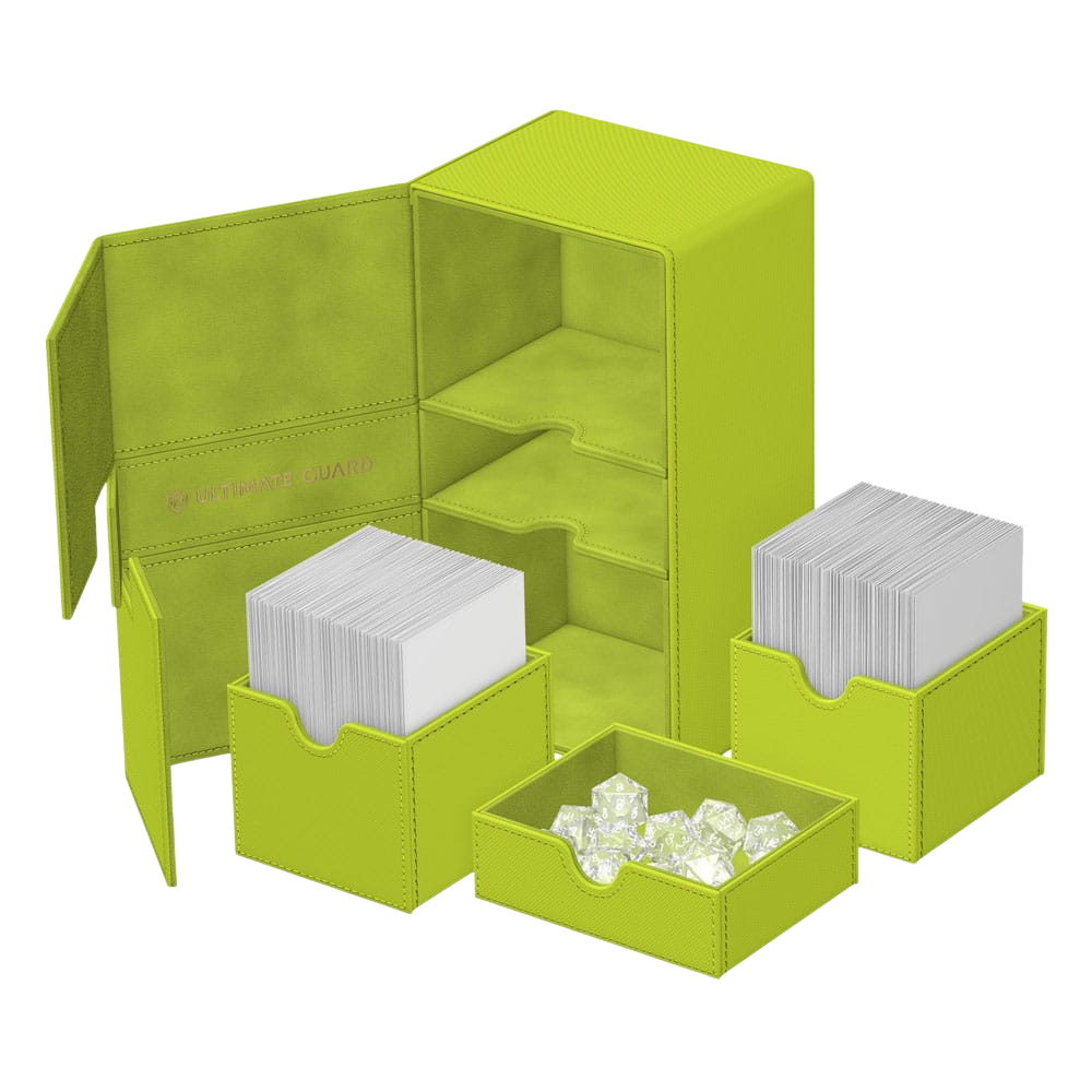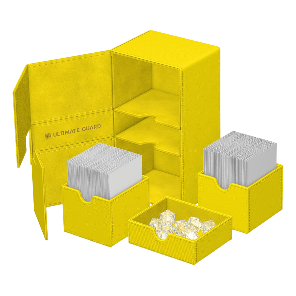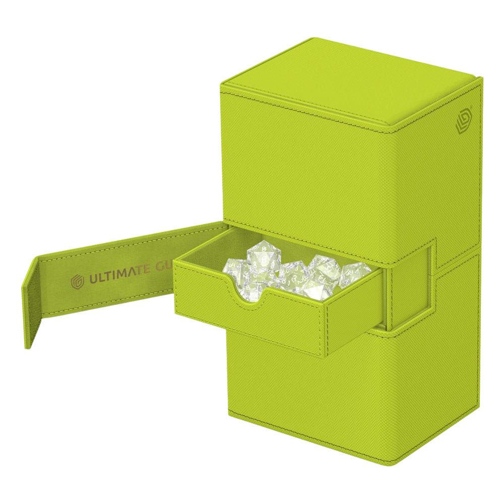 Catch the ultimate summer vibes with Ultimate Guard's Twin Flip'n'Tray 200+ Xenoskin from the limited "Summer Edition 2025" in four vibrant new colors: Dandelion, Peach, Lime and Lagoon! The Twin Flip'n'Tray deck box features two independently accessible trays with quality microfiber inner lining for 100 double-sleeved or 120 single-sleeved cards each. Additionally, the resistant Xenoskin box has a removable accessory tray and a strong magnetic closure to keep the Magic: The Gathering, Pokémon, Lorcana, One Piece or Yu-Gi-Oh! cards inside safe.